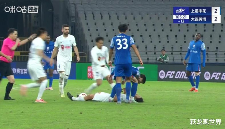 第43分钟,老将吴曦为申花扳回一球,1-2。下半场进入白热化阶段,拼抢和对抗加强,补时阶段第90+10分钟,毕津浩和吴曦争顶高空球,后者面部受伤倒地,var介入,裁判判点,路易斯罚进将比分扳为2-2。原本补时13分钟已是超长补时,但主裁判认为双方冲突占用了时间,继续补时。