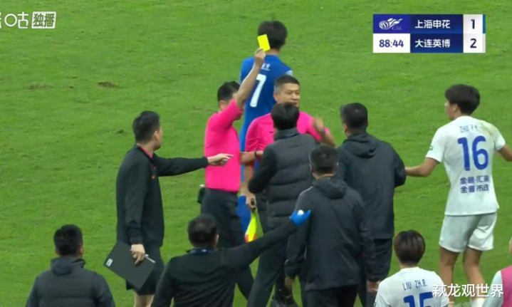 第89分钟,李国旭不满判罚被出示黄牌,边裁与他发生口角