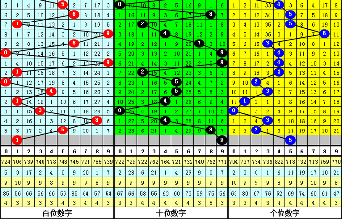 上期第二位奖号为:8,间隔11期之后开出,走势较温,前10期该位温码开出频繁,共出现了6次,未来几期看好该位温码继续,关注号码9。