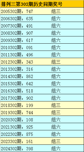 则,排列三第2025291期奖号:948,与排列三第2025302期奖号可能有相同的号码。且排列三第2025302期奖号大小比、奇偶比和012路比可以参考第2025291期奖号形态:大小大、奇偶偶和012路。